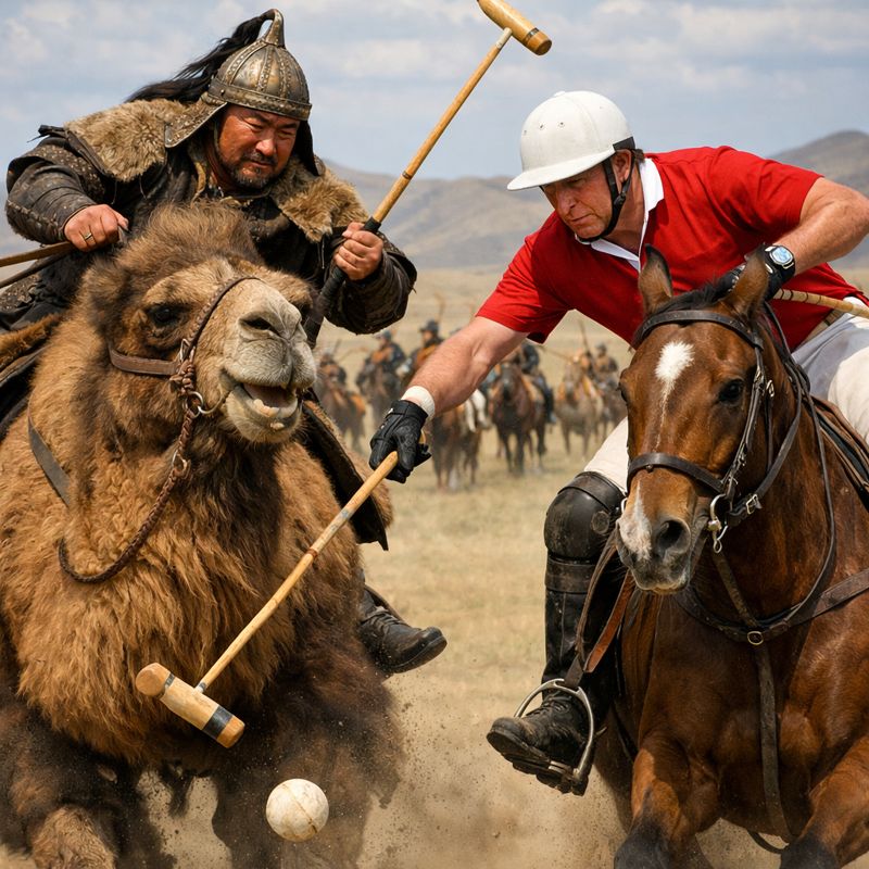 Datei:Kamelpoloduell Dschingis Khan vs Prinz Charles.jpg